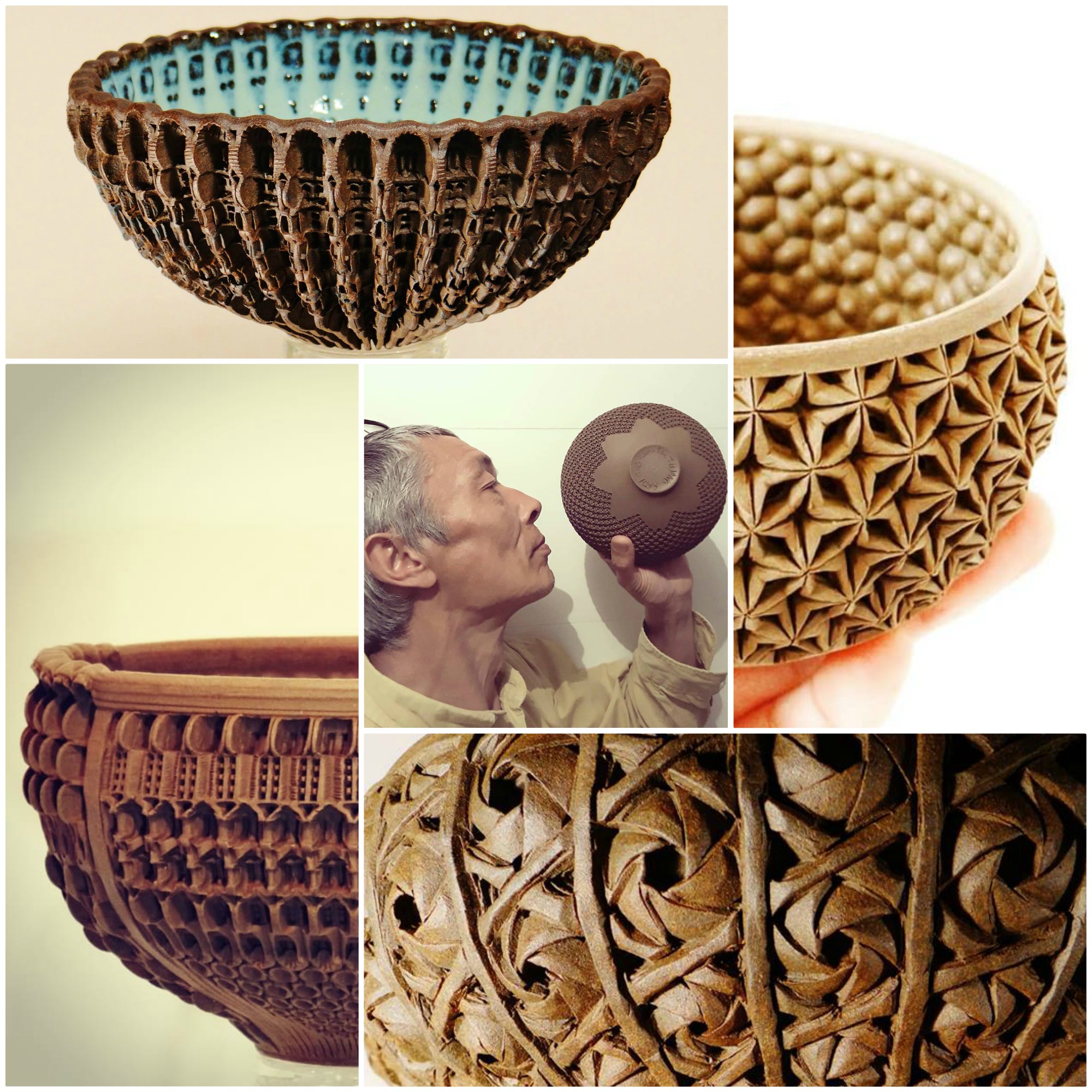 Depuis toujours Thierry façonne la terre : source de sa paix intérieure. Il a, aujourd’hui, recentré sa production autour d’une seule forme : le bol et un seul émail appliqué à l’intérieur. « Les procédés sont venus d’eux-mêmes, je les ai reçus sans savoir d’où ils venaient. J’ai su qu’ils m’étaient destinés.» Concentré sur le bol tourné de ses mains, il repousse la matière, décore, cisèle avec ses outils de bambou. Ainsi le bol prend une autre tournure, d’autres volumes. Ce travail poétique, des textures décoratives à l’extérieur du bol, entre en résonance avec la réponse à l’intérieur du bol. Chaque bol est unique, présenté comme une invitation à la méditation autour de la matière terre.